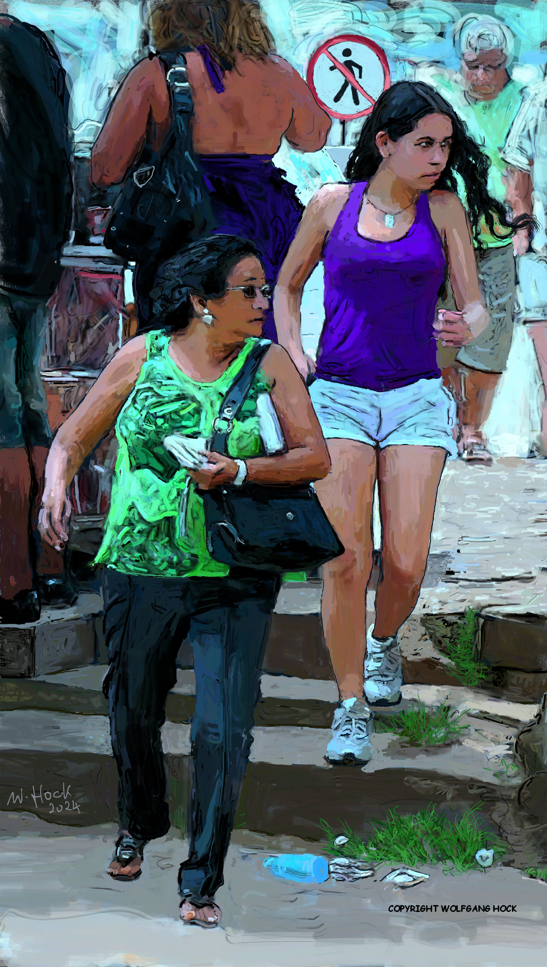 Volle Tüte - Full bag - Saco cheio 2024   Handmade digital painting on canvas 160 x 110 cm (184 megapixels) Wartend - Waiting - Esperando 2024   Handmade digital painting on canvas 110 x 160 cm (184 megapixels)