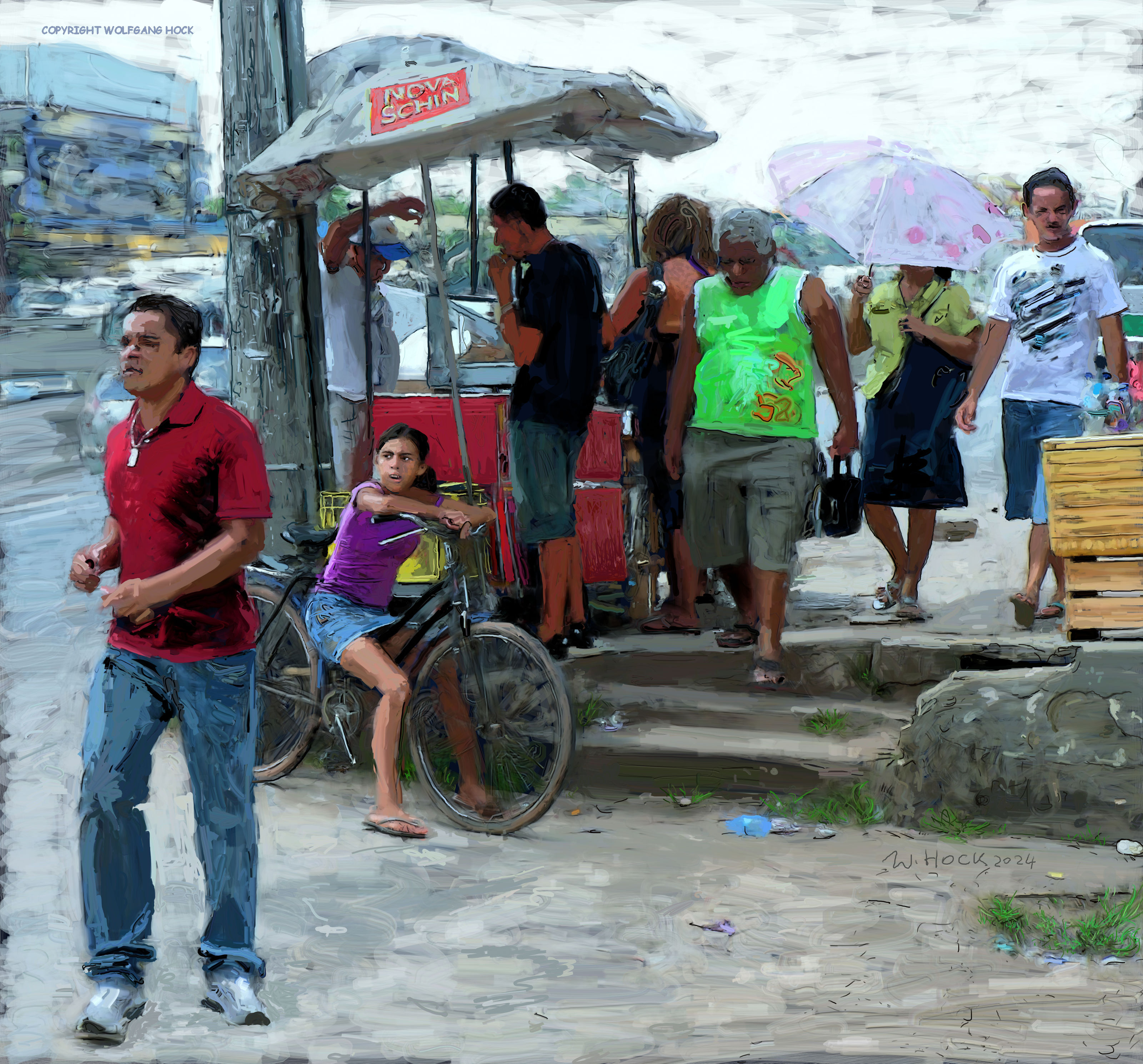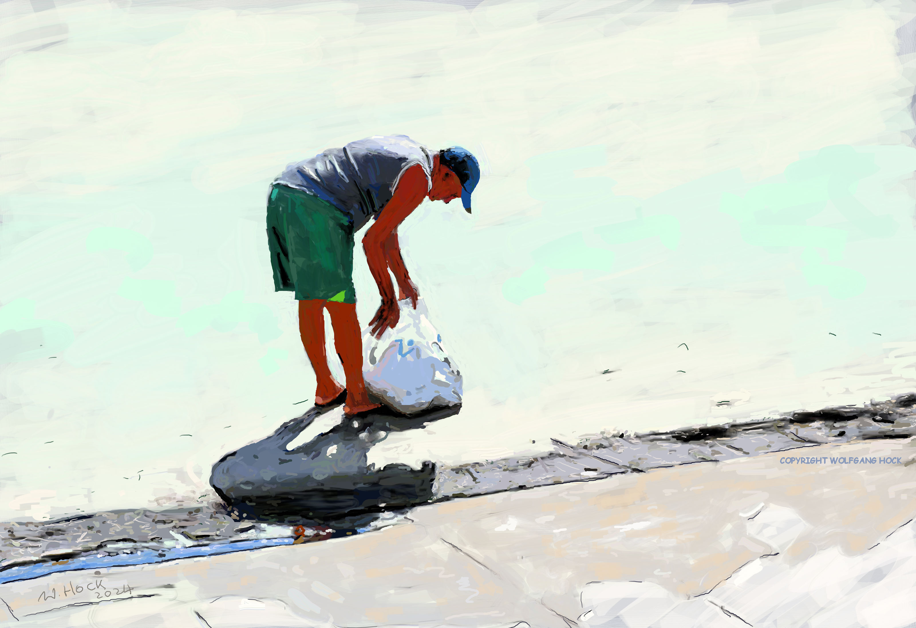 Mann vor zwei Reifen vorbeigehend - Man passing in front of two tires - Homem passando na frente de dois pneus 2024   Handmade digital painting on canvas 115 x 135 cm (227 megapixels) Junge - Garoto - Boy 2024   Handmade digital painting on canvas 110 x 150 cm (197 megapixels)